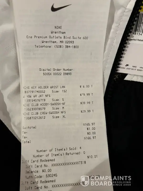 Upon receiving the e mail, boxing the sneakers, going to UPS and spending $15.00 to ship them, Nike said they are not returning them, with no explanation or compensation. I will not getting a credit or anything. Here is the case and claim #’s