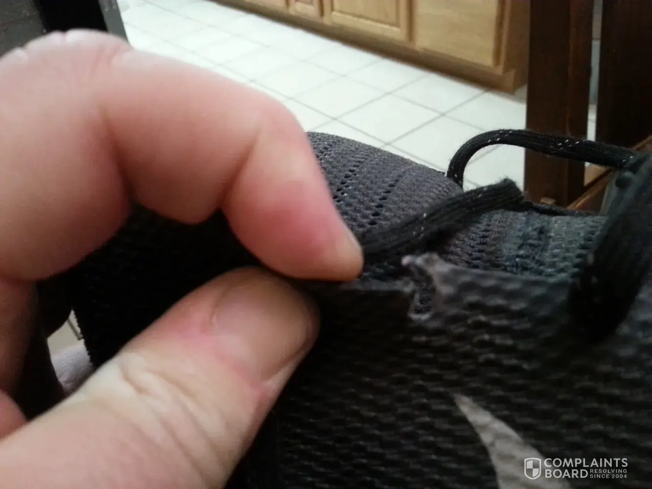 I have provided pictures of the shoe, the damage and the shoe box which I did keep. The damage is on the right shoe outside the fabric has shredded causing a whole. I have put a white tissue in the shoe to better show the hole developing. My concern is why did the shoe start to fall apart so soon after purchase? The shoes are great, very comfortable and I like them very much except they are falling apart. I am sure the life span is not suppose to be a few months.