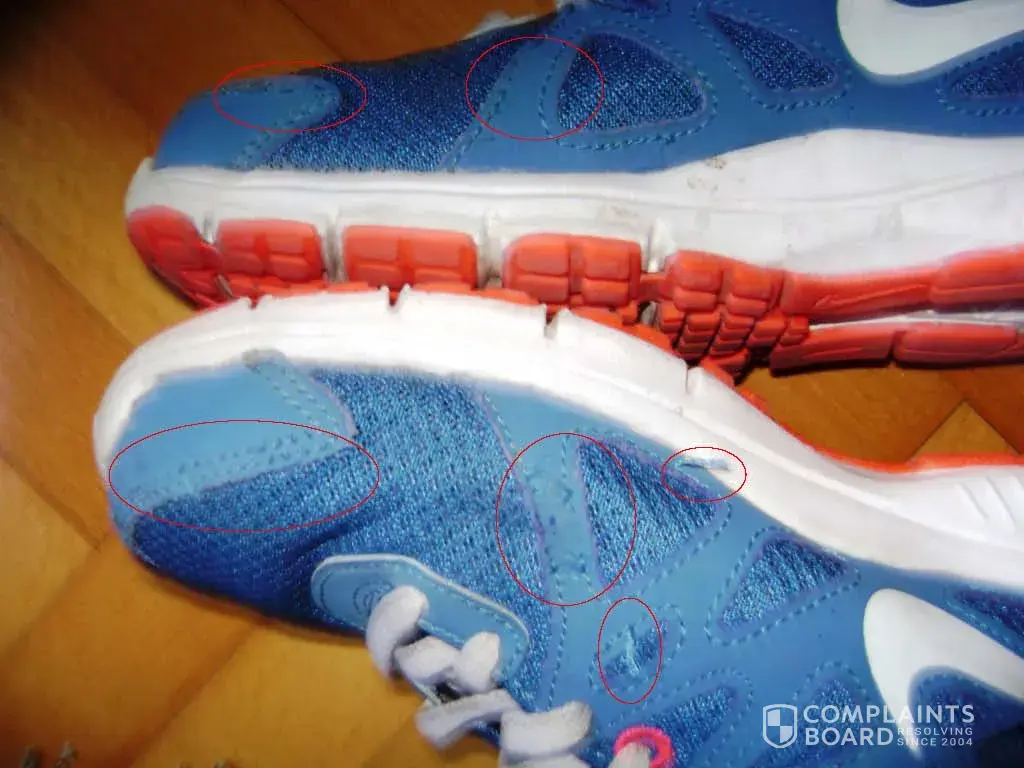 Pls., Check the attached pics about Nike sport shoes quality. And I have many pairs in the similar condition. All of them, almost new, without any further usage. 2 / 3 times use and become to tier in parts.