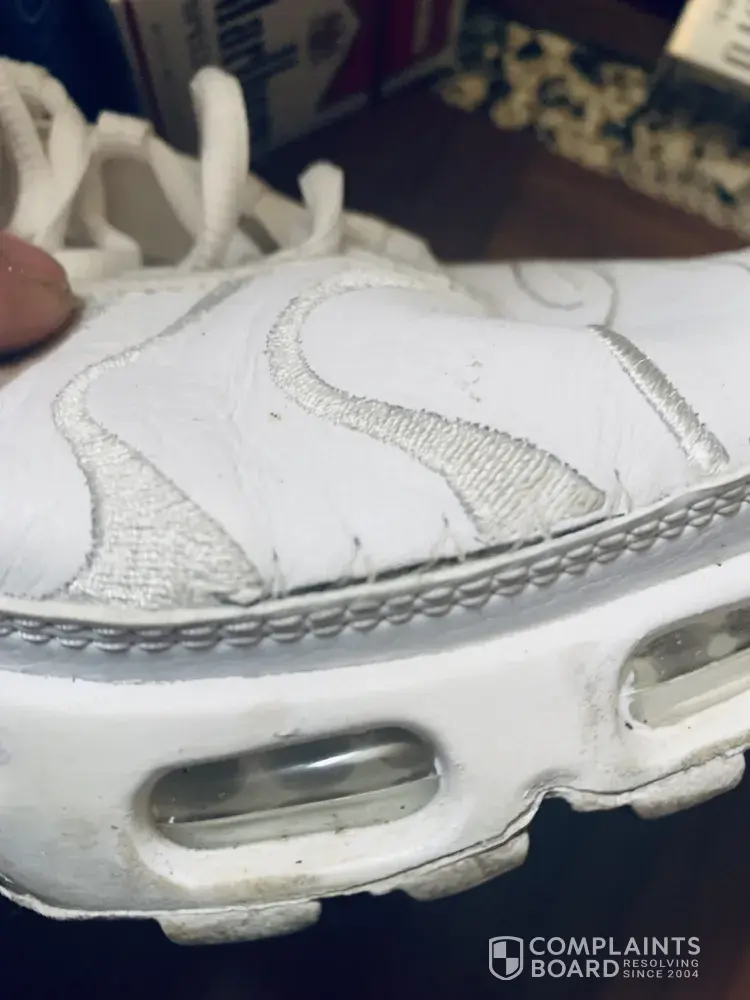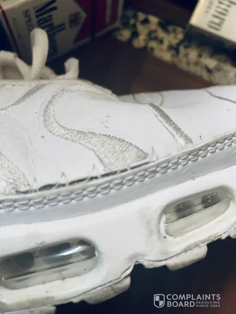 I drought a pair of white on white tn air size 9 last year and paid $ 170.00. I only wear the sneakers when we go somewhere nice. On the right shoe at the bottom. Where the leather meets the soul of the shoe you can see the repair that Nike performed. There is a 3 inch slit or cut that was sown back together. I have tried to take the shoes back but was told because I purchased them a year ago they couldn't help me. I am extremely disappointed in what Nike tried to get away with and how I'm being handled. Instead of giving me a replacement pair they took my money gave me a defective product and don't care. I love my sneakers and only wear Nikes for over 45 years now I have to fine a different brand. Please help
