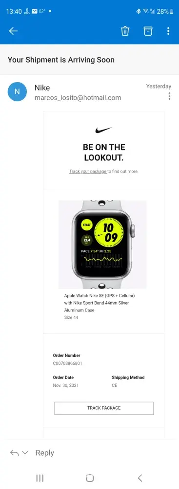 I've ordered the Nike Apple Watch SE 44mm (GPS+Cellular) through order C00708866801, on November 30th, 2021.