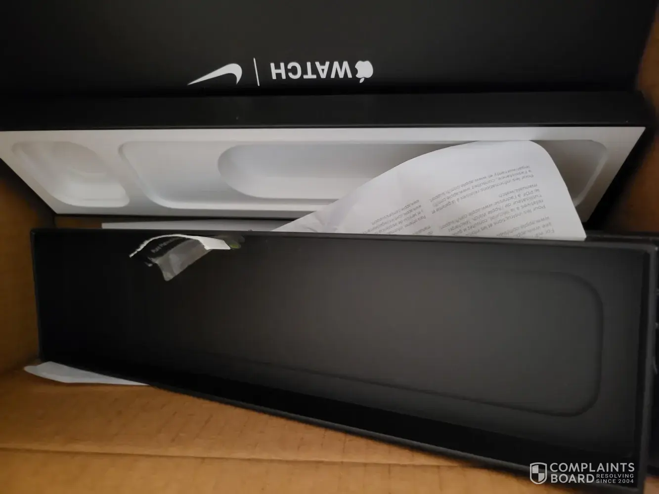 The Nike Apple watch itself and all the valuable package accessories such as cable, charger, etc. were removed from the Nike Apple Watch case box, and only the papers and case box itself.
