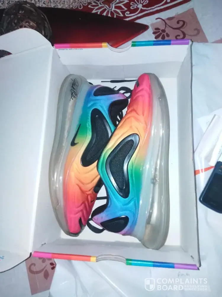 I bought a pair of Nike 720 for my son at university on the 28th October. On his return home last month he showed me them. The shoes have hardly been worn, as he has several Nikes. One of the soles is punctured. There are no holes underneath, have sprayed water on the under sole to find a leak. There is nothing there, the leak must be under the insole. I paid over £100 for these shoes. I am disappointed with Nike's 60 day policy. The soles have virtually no wear, but are now 5 months old. I would like to know Nike's thoughts on this. The shoes were bought from JD SPORTS, who advised we contact Nike, as it is a manufacturing fault.