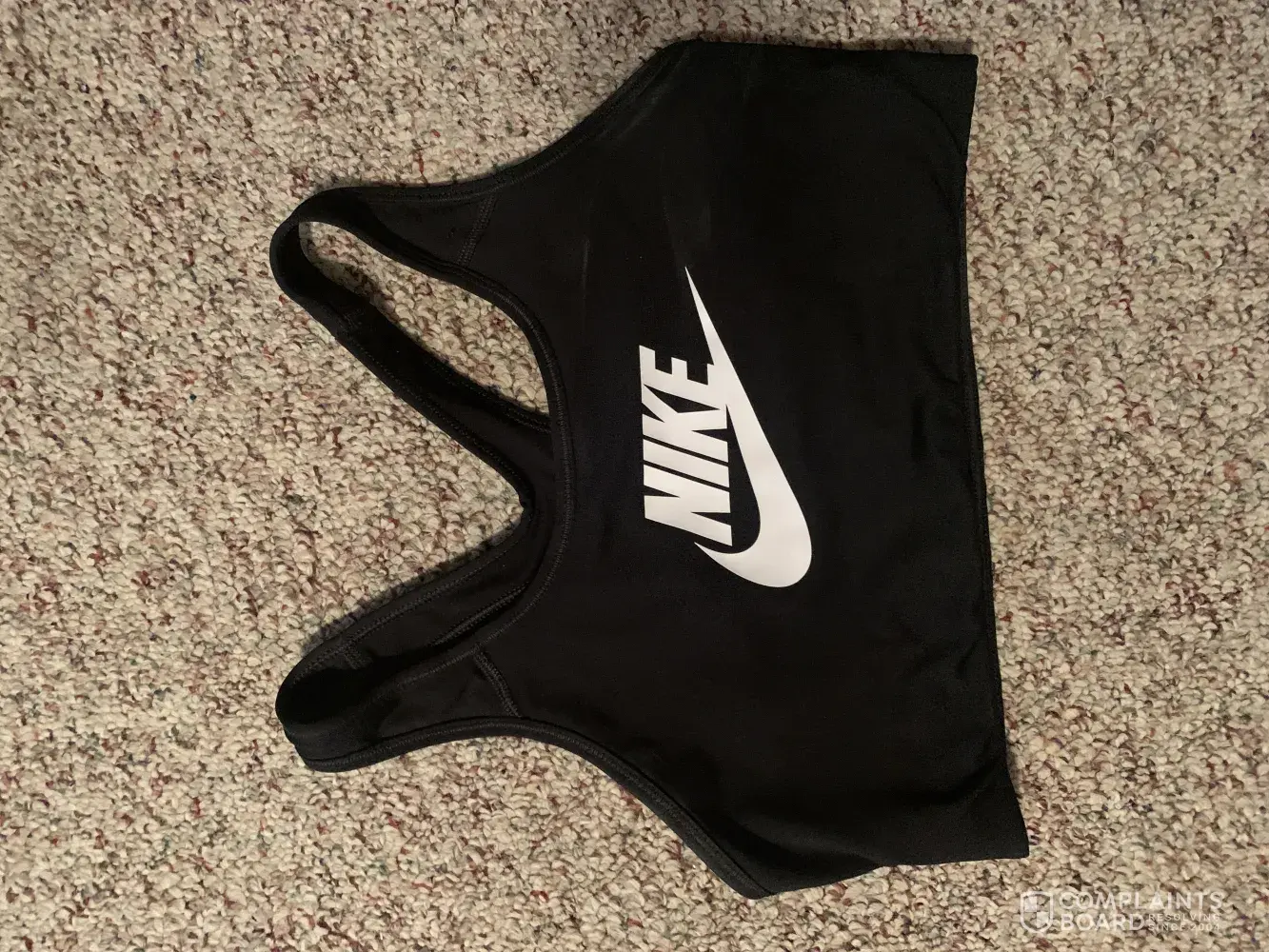 I purchased this sports bra at the Nike store in DesMoines, IA. It seems to have a really strong smell to it without even being worn. I have tried washing it and letting it air dry as well as drying it and nothing is getting the smell out. It smells like chemicals or burnt rubber, but it is very strong. I cannot wear it because of this..It would be nice to somehow be compensated for this, I would even send in the bra. It is size L.