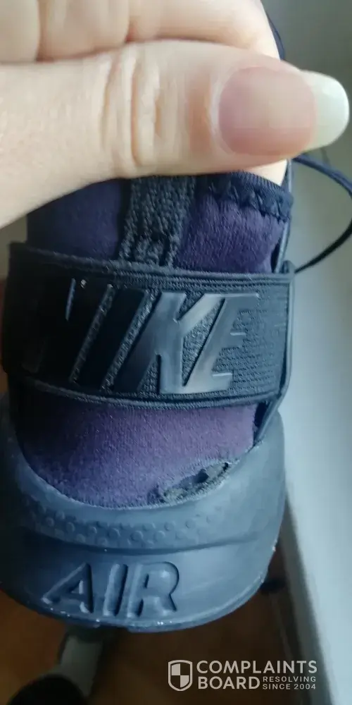 I have purchased nike shoes not even a year ago. After a month there was a detail like a small hole, but i did not complain on this since I never do this kind of things. Today I have noticed another hole on the back of the shoe where the shoe material is glued for the trainer. I am really careful with trainers and take a great care for all of my shoes.