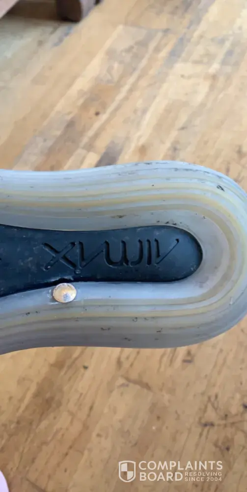I am a 20 year old college student who has worked and saved up for weeks to buy my boyfriend a pair of 720 Airmax. After having them a few days we noticed a Thumbtac in the bottom of the shoe and now the air bubble is deflating. As these runners cost 190 euro i expected a much more durable sole, the rubber should be able to withstand more than a [censored] from a thumbtac and I am extremely disappointed in this product. I feel that i wasted my money on a non-durable pair of shoes and they cannot be returned because it is not the fault of the store but that of the company. I would appreciate if Nike would resolve this issue as the shoes were very expensive and also a gift.