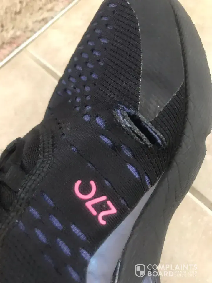 I purchased a pair of sneakers from an Nike outlet in Florida while on vacation. They looked nice and were comfortable when I tried them on. After wearing them I noticed I kept tripping. After some thought I realized they are flawed. All I wear are Nike, also buying them for my toddler. Have never encountered this issue before. Please next time dispose of flawed shoes rather than sell them to the public, I almost fell multiple times.