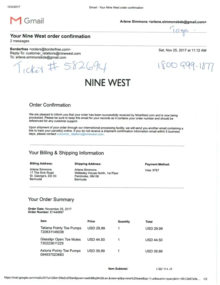 - 6 Jan 2017, I sent email to Nine West. Your staff replied my email but it is not helpful.