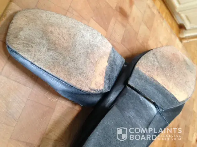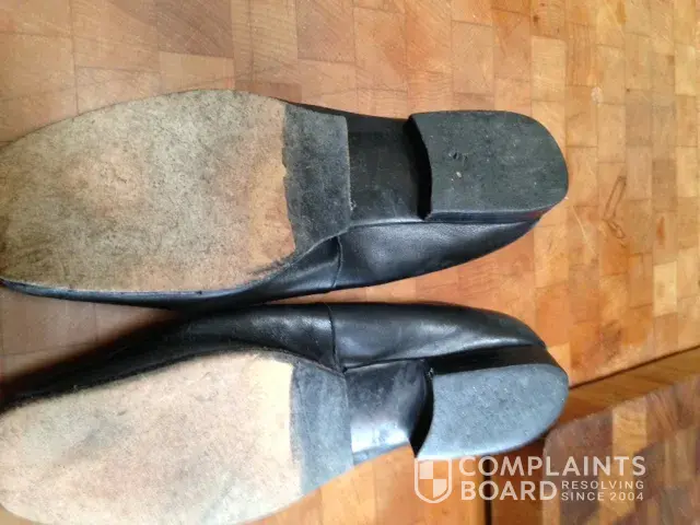 I'm extremely disappointed on the quality of the shoe's man-made soles. I considered taking them to a shoe repair and having them resoled, then thought why should I pay for the cost of resoling a poor quality shoe. So, I am writing to show you the poor craftsmanship of these shoes and to also ask how you suggest resolving this issue.