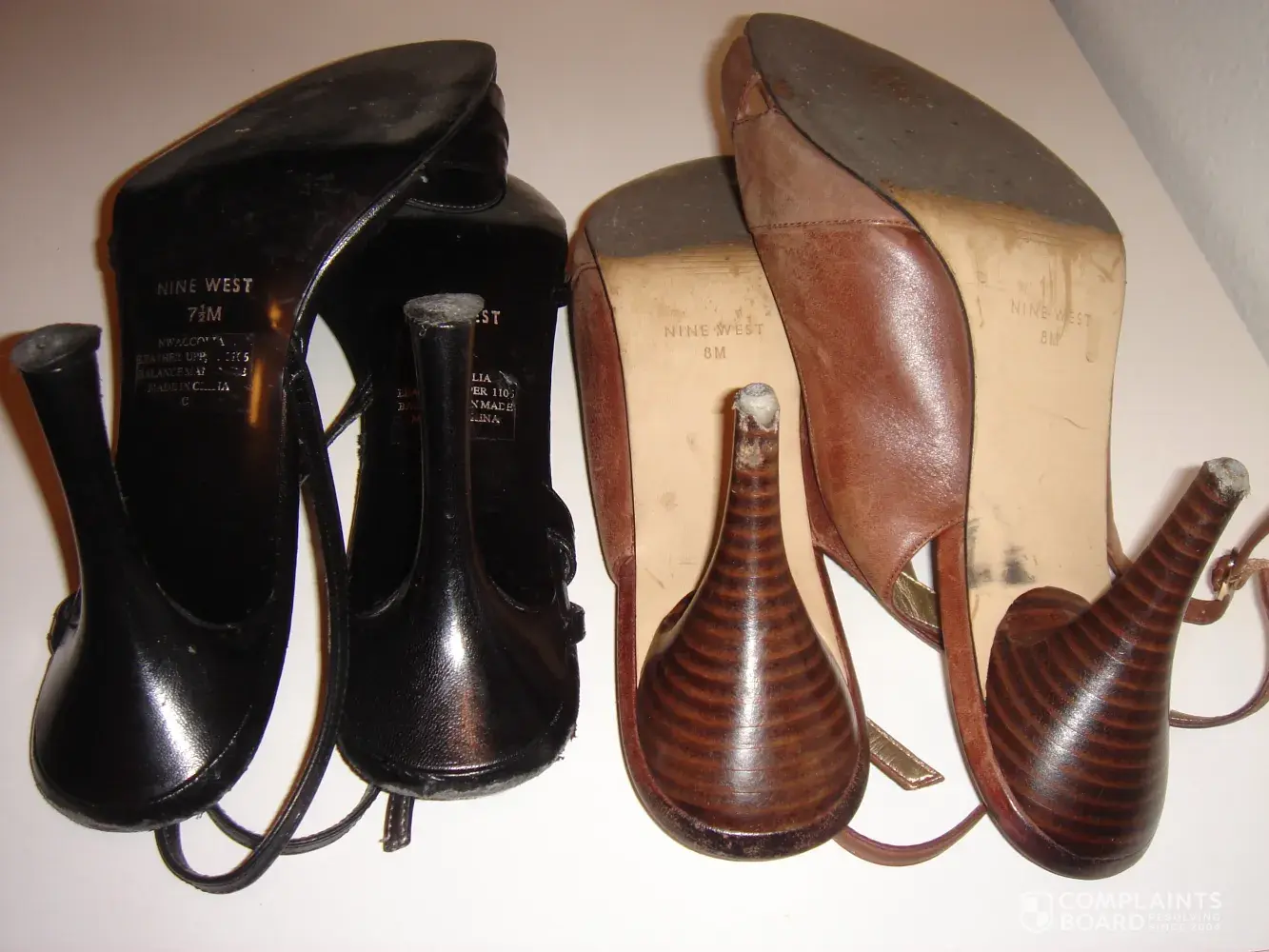 The only good thing about Nine West shoes is the nice design, from there is down hill! Overpriced and treble quality. Wal-Mart sell better shoes! Your shoes last about 3 months before they start to completely fall apart. The hill caps, extremely weak they really start to ware off right the way, 3 month is too long, they will just not going to last that long. The back of the hills of the shoe and the front the materials is so thin and weak it just shreds in peaces and it looks like I’ve had these show for 5 year, or it the only pair I wear. It is embarrassing! For the little skinny black sandals I paid $70.00 and look at them now 3 months later. It should be illegal for you to ask the consumer to pay $70 for something that is so poorly made. Shame on you Nine West!