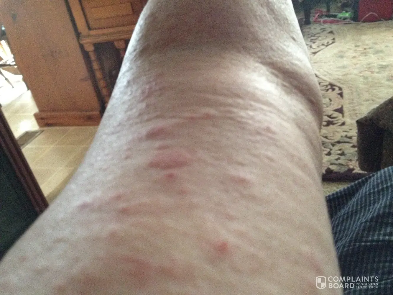 After two applications, I developed a painful, burning, itching rash on the entire length of my arms and including my hands. I work and it is so embarrassing for people to see this. I have scratched until it bleeds. It is a very puffy, very red, raised rash covering the entire surface of arms and hands. I have pictures.