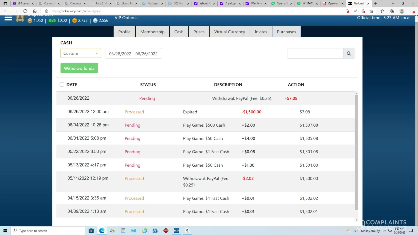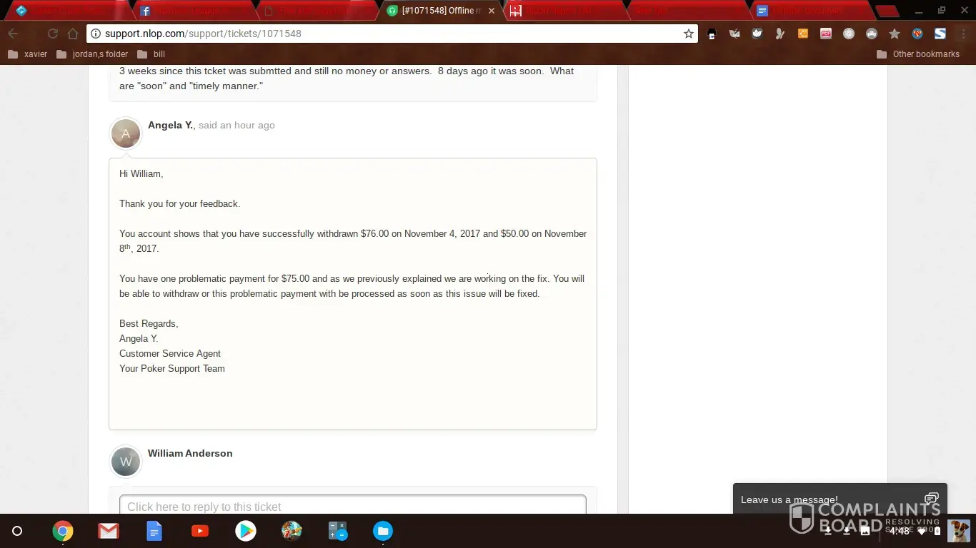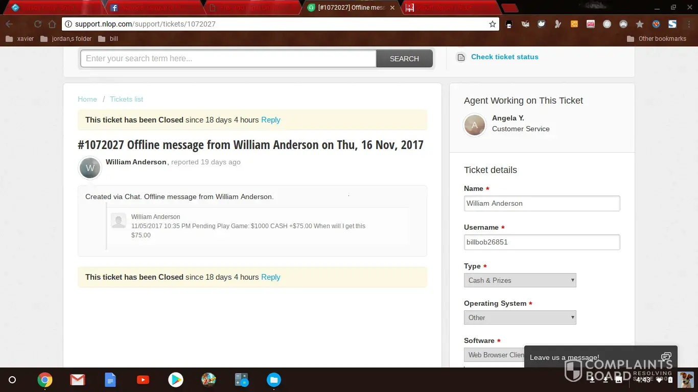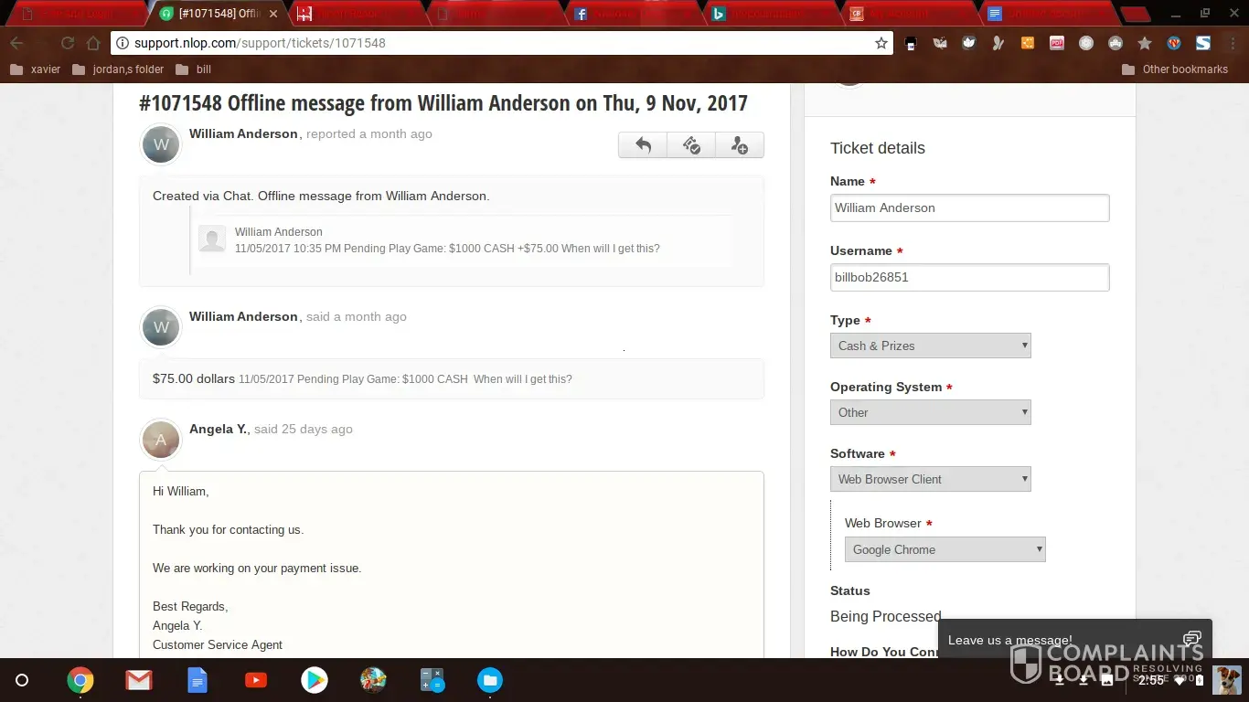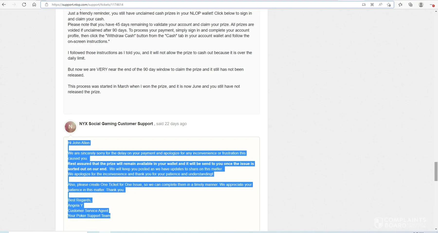 The first portion of the complaint is the fact that NLOP does not payout all the prizes, larger prizes require a support ticket to cash out the prize, however when the support ticket is opened, they just keep stringing you on, and then stop responding to the support ticket assuring you the funds will remain in your wallet until they get the issue resolved on their end.