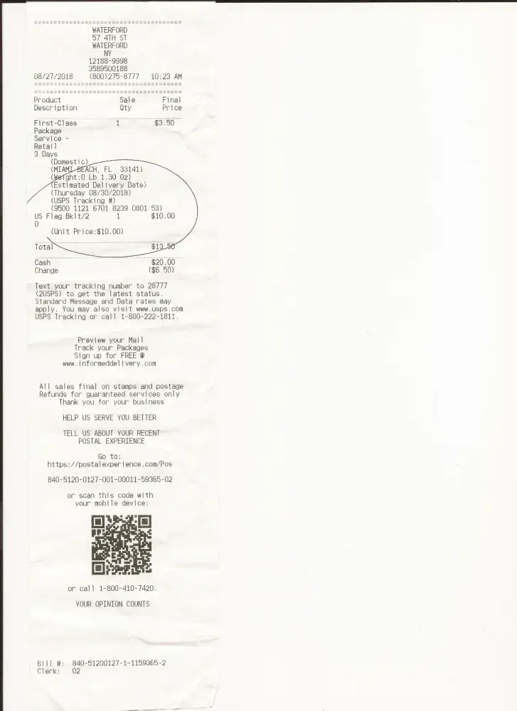 Tracking# [protected] 53 sent on 8/27/2018 (COPY BELOW)