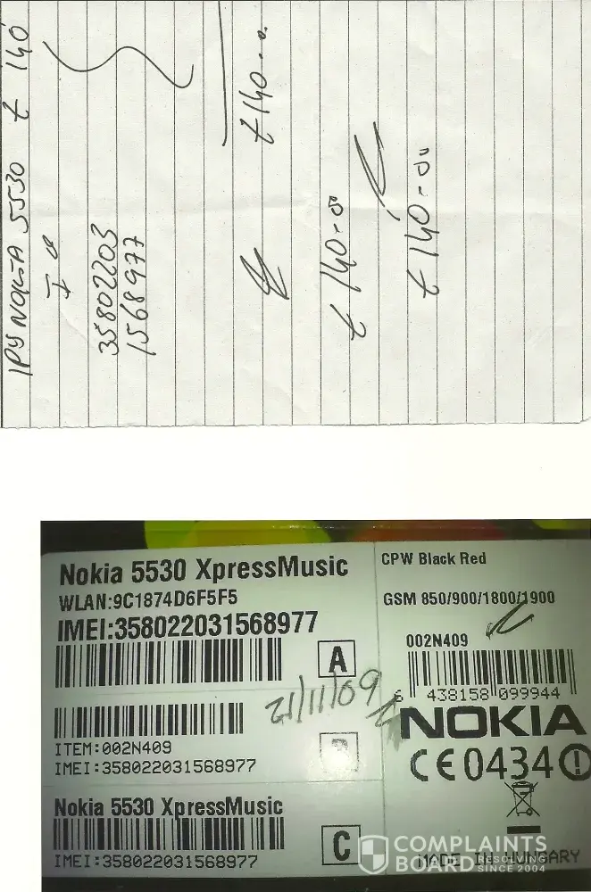 I am writing to request advise from you regarding a matter of a mobile phone Nokia 5530 ExpressMusic that I bought at GLAMOUR UK on the 21th November 2009, after three month I got a problem with it, it didn't switch on, return it to them they told me they will send it back to Nokia Care and if they can't repair it they will give me a new one. On the contrary they gave me one which is a second hand and it don't work properly, and also I can't get access to the internet now.