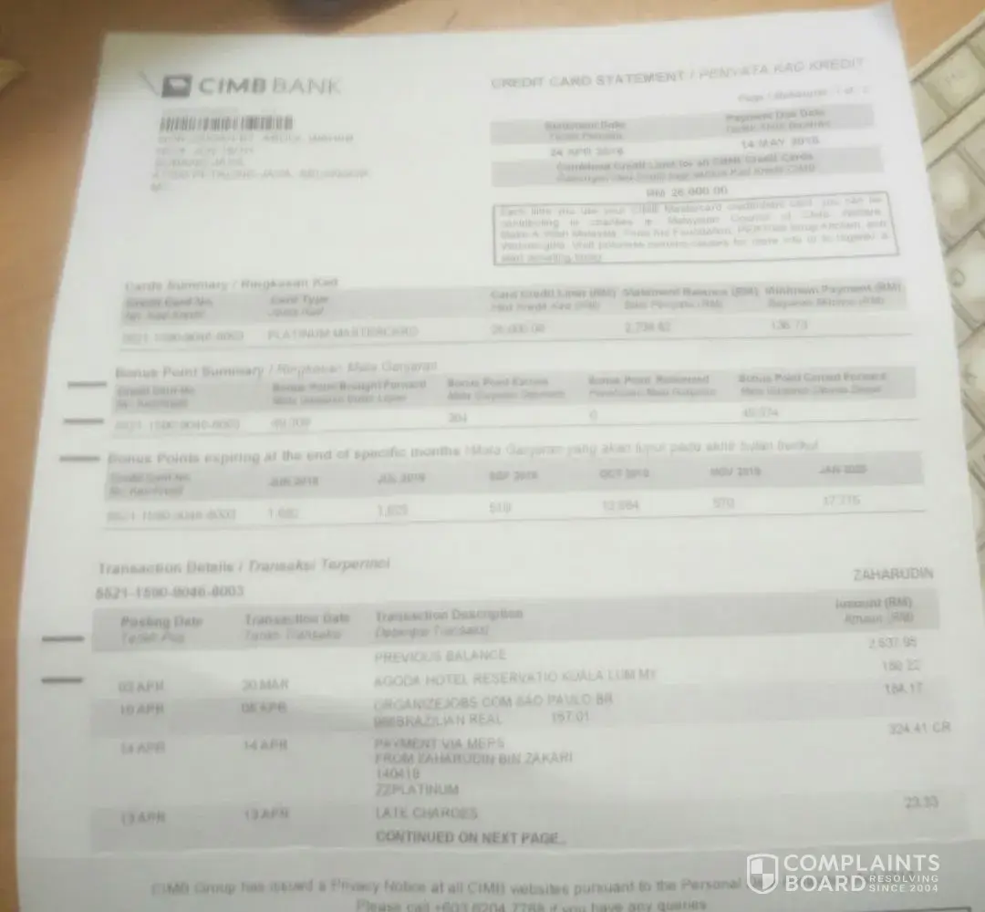 I had received my credit card statement transaction dates 8 apr and 8 may 2018 from organizejobs.com sao paulo br 986 brazilian real 157.01 +157.01 respectively. kindly refund the amount above which is equivalent to rm 184.17+ rm184.17 respectively. I can only attach my april 2018 credit card statement as my may 2018 I have not received yet but my credit card cimb bank have confirmed the above transaction being charged for the month of may when I made the inquiry regarding the above charged. I have also requested the bank to block my credit card account.