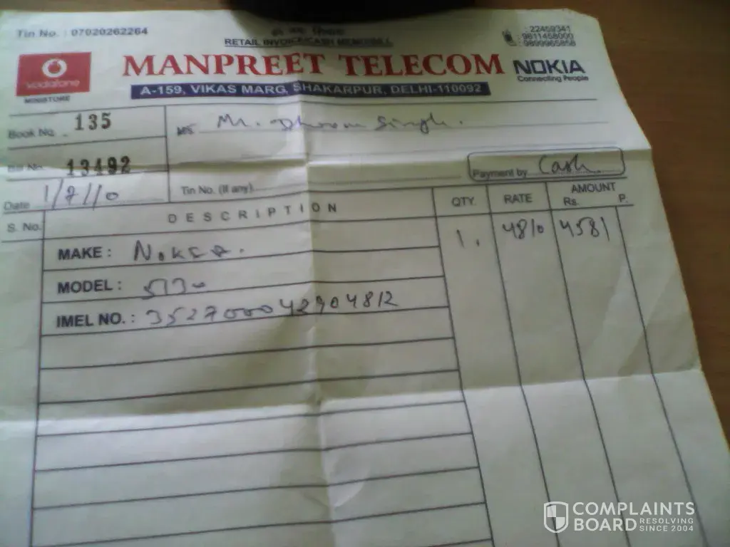 I purchase nokia model 206 mobile from rz mobile shop in muzaffarpur bihar, on date 05-02-2013.
