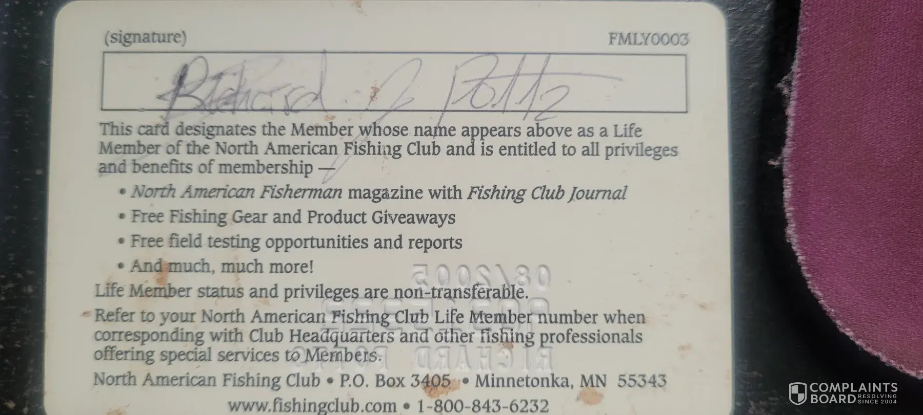 I've been a life member for several years I believe it started in 1994 I received a couple of fishing items a patch but nothing else that I was supposed to get like the magazine. I received a Daiwa rod and reel the top piece of the rod broke and I cannot find to place to get another one. I've tried to contact North American Fishing Club but cannot get through