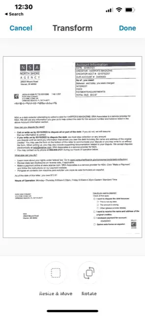Letter sent by North Shore Collection Agency 28820 Mound Rd. Warren MI to attempt to collect $12.97 for Harper's Magazine.