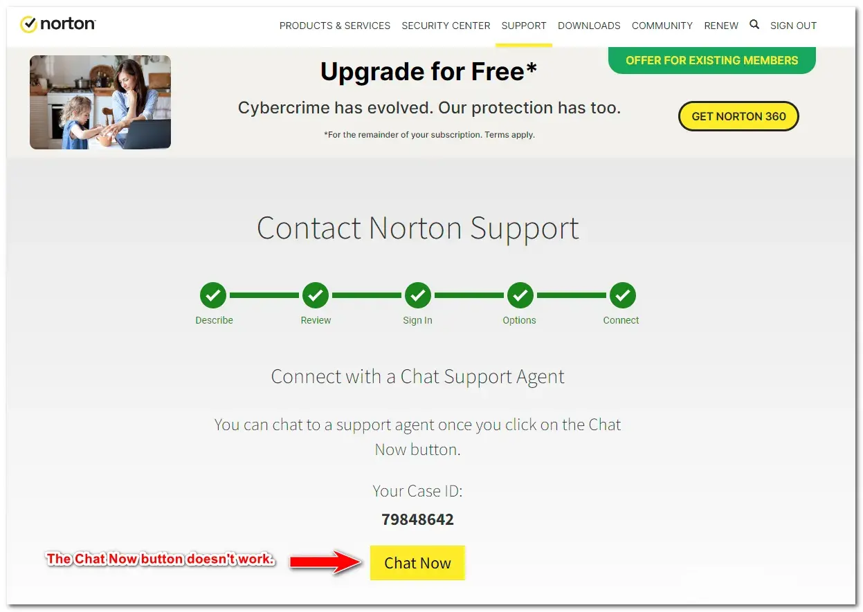 I could not cancel my trial subscription using the steps provided in the Help section of the Norton website.