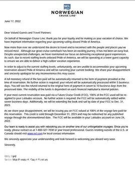 This was extremely disappointing given NCL have been cancelling cruise bookings as they have limited staff and requiring a reduce number onboard. I refer to attached letter forwarded from friends cruise which has been cancelled.
