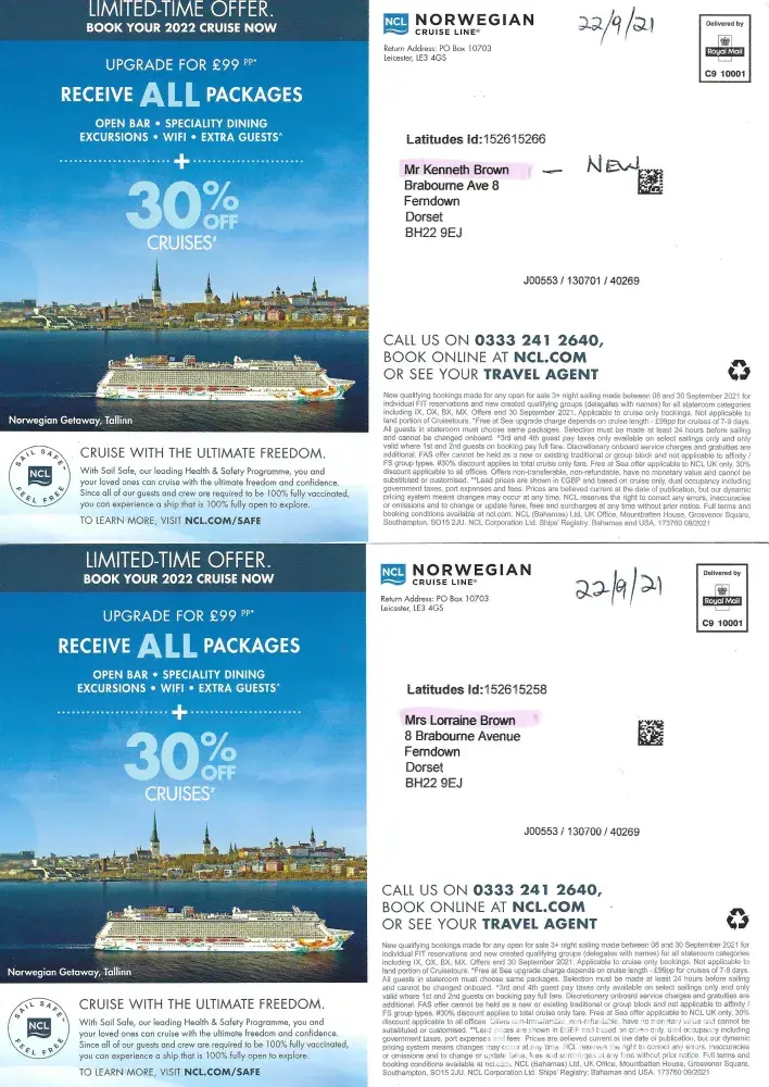 Norwegian Cruise Line Continued mailings despite over a dozen requests to stop, a complaint to the dma and another to the ico