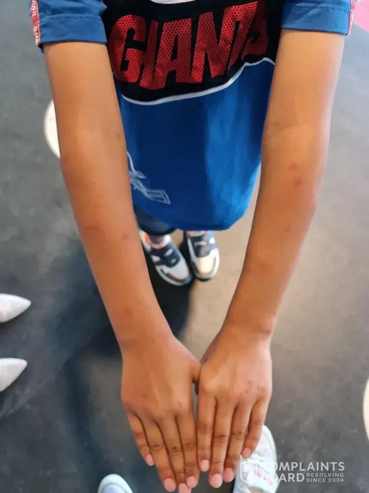 When we returned in the evening, we informed the hotel reception about it, and showed them the extent of kid's condition. By evening they had bright red patches all over the body.