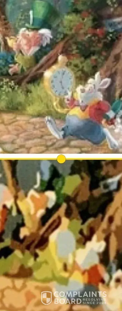The images advertised on their website are high quality, high detail/resolution and gorgeous. The pictures that I got to paint look like a watered down photocopy of this picture with no intricate detail whatsoever, like all the illustration is almost deconstructed, looks incredibly blurry. It's ridiculous.