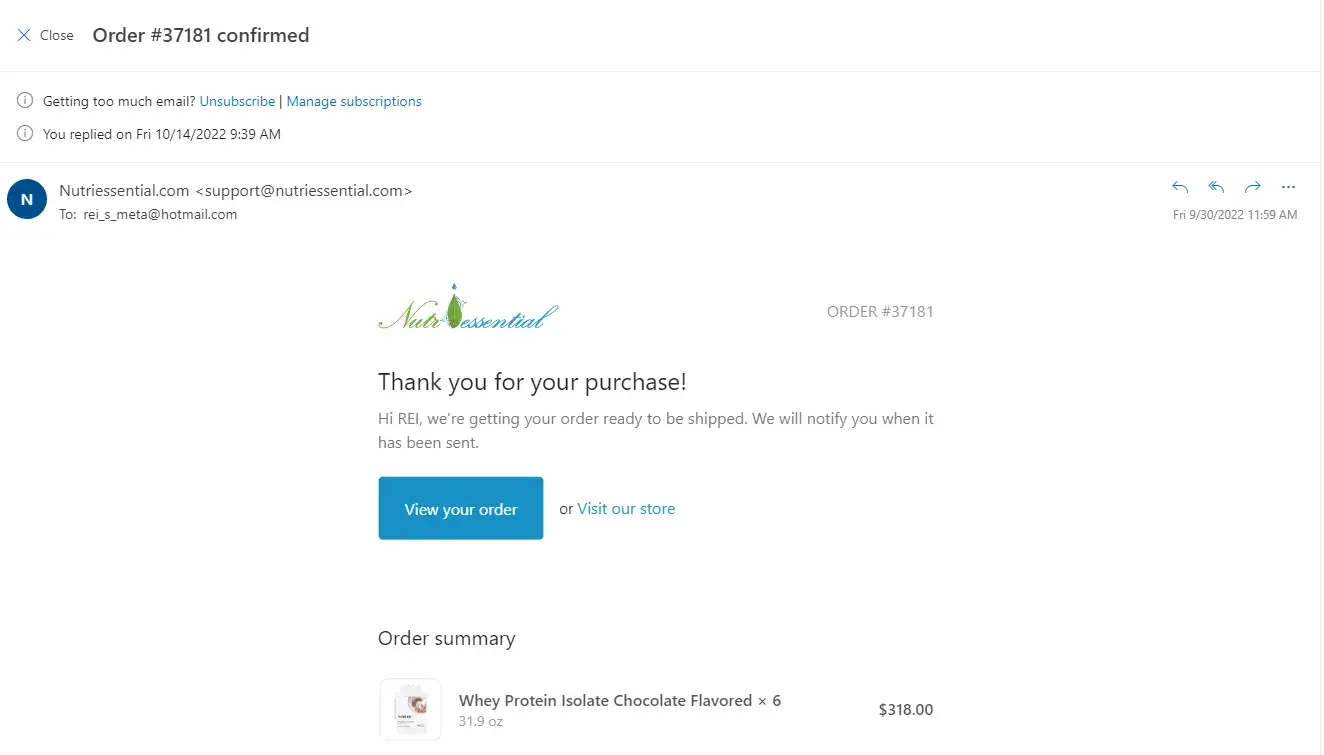 Nutriessential has conducted themselves with a total lack of integrity. I was amazed when reading through other complaints online that Nutriessential has done the exact same thing to other customers.