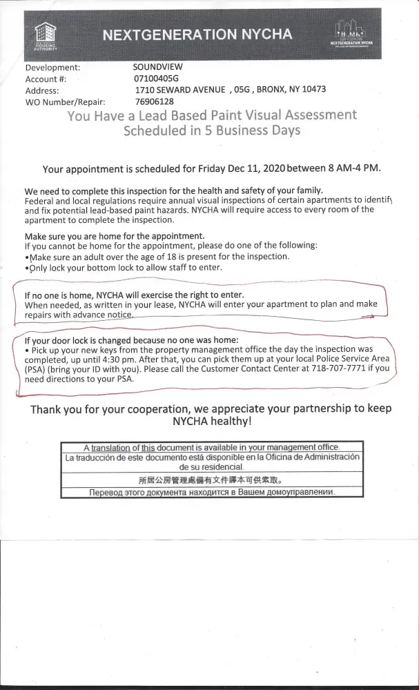 Dear Sir/Madam: My name is Tony Bobet. I resided at 1710 Seward Avenue, Bronx, New York City 10473, Apartment# 5-G. I am filing a complaint to New York City Housing Authority. They are located at 1720 Seward Avenue, Bronx, New York City 10473. My main reason of filing this complaint because of lack of heat and force entry into the apartment. I don't know...