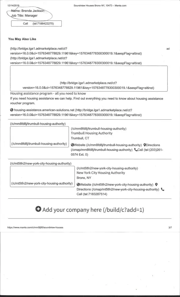 Dear Sir/Madam: My name is Tony Bobet. I resided at 1710 Seward Avenue, Apt#5-G, Bronx, New York City 10473. I am here of filing an complaint to New York City Housing Authority- Sound-view Houses. The manager of the office is Brenda Jackson. She is located at 1720 Seward Avenue, Bronx, New York City, 10473. Telephone# 718-842- 2270. Ms. Jackson didn't care...