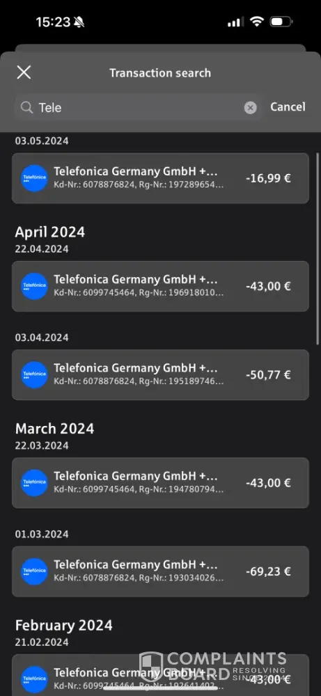 Upon checking my DB bank account online statement, I suddenly spotted suspicious transactions being done using my IBAN details. I further investigated and found out they originated from O2 (Telefonica Germany GmbH & Co. OHG). When I contacted OO2 support consultants, they told me I had purchased two mobile devices (iPhone 13 Pro Max 128 GB and iPhone 13 Pro Max 256 GB) with them. I was shocked to hear this and told them I had never seen this type of iPhone in my life and someone must have used my information to make such purchases. I was more surprised to learn the contract commenced on 2nd February 2022 and I have been paying for these installment billings via an automated deduction from my bank account for over a year now.