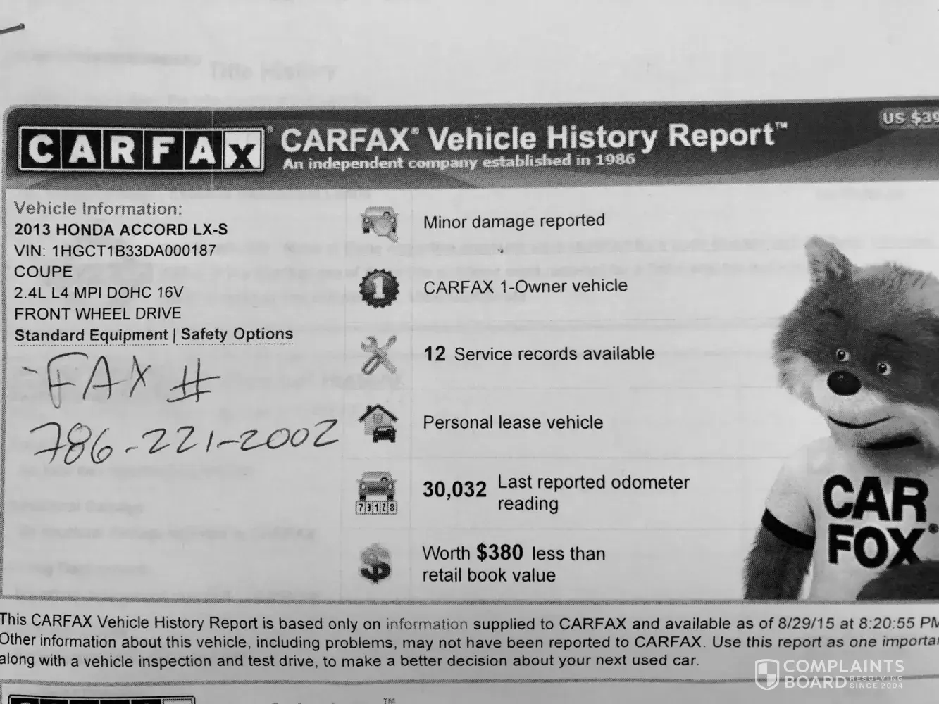 When I purchased my vehicle at Off Lease Only Miami in August of 2015 I was provided with a carfax that stated the vehicle had only one previous owner and one accident with minor cosmetic damage. Flashing forward to 2018 I am now trying to sell my car. Not only have I already taken in my Honda Accord for an auto recall service on some battery parts but I am now finding out that my car has actually had one other previous recall service, three previous owners, and frame damage!