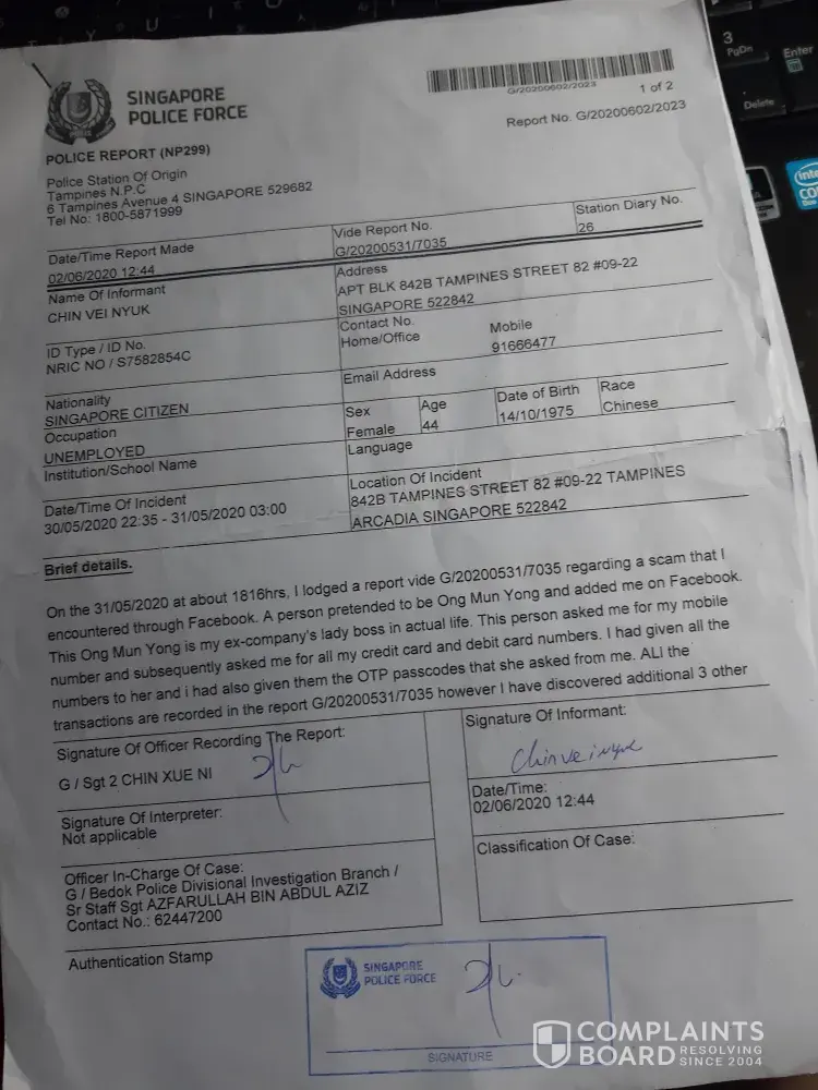 My name chin vei nyuk, fraudster cheat me using my credit card go to your offgamers buy goods, 11 item total amount $2572.31, I write email to [protected]@offgamers.com tell stop the transaction and cancel sent out the goods. I have two police report, I hope your company refund the money to the bank and bank return money to me. I was jobless and layoff, I hope your director and ceo leonard c approval and agree the money to me. I have contract your company in in k. L, the person in charge rock size and wai joe tung (don't want refund money) and also go to singapore branch 17 circular road, but don't have this company. I hope your branch in singapore help me refund the money and stop all the transaction and contract [protected]@gmail.com as soon as possible. My police report have my contract no, please help me solve this problem because I worry it till cannot eat and drink and sleep well.