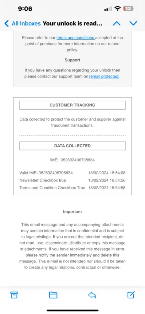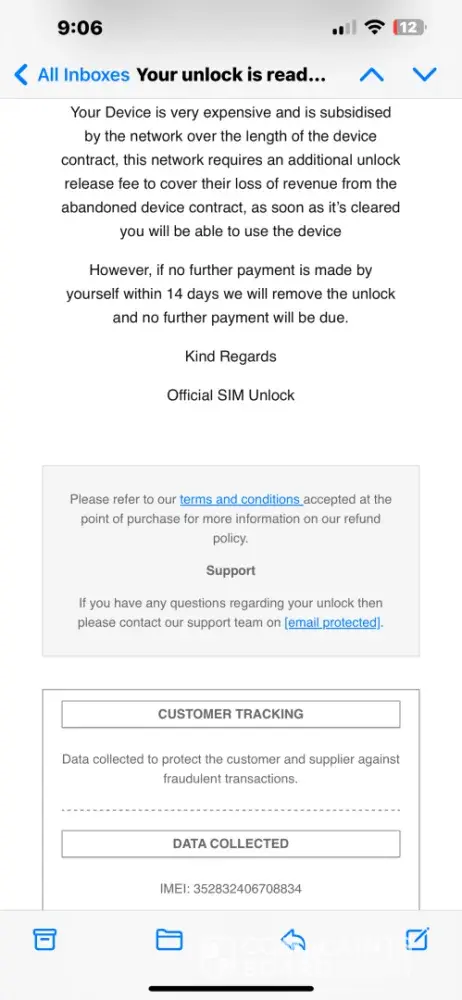 2. Official SIM Unlock emails