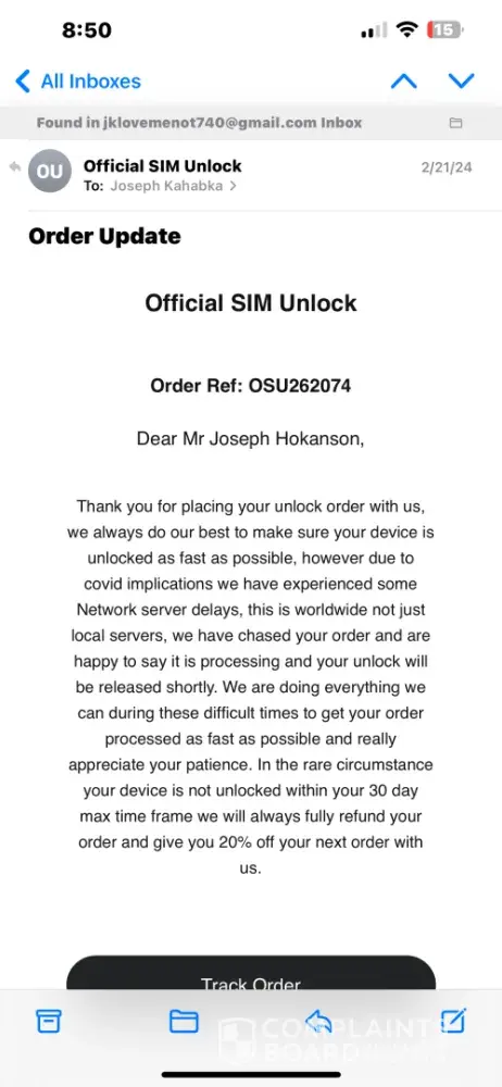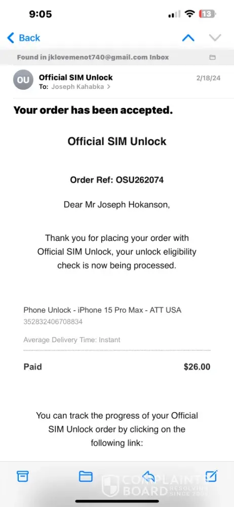 All in all, Official SIM Unlock left the customer feeling ripped off and taken advantage of. With such questionable practices and lack of transparency, it's advised that others steer clear of this service.