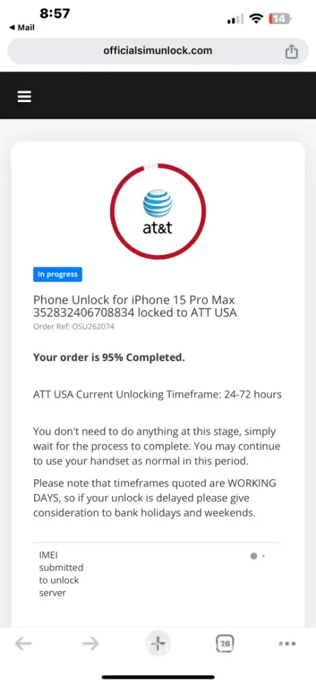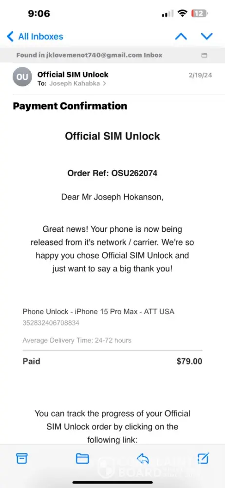 The good news is that the website interface they provide is quite simple to navigate, and the status tracking system is efficient. However, the bad news is that after paying for the service, I was disappointed to receive a message from the company stating that my phone was deemed "unlockable." They claimed that my phone was either reported stolen or out of service, which was definitely not the case. I did everything right and met all the criteria, but Official Sim Unlock simply failed to provide the promised service.