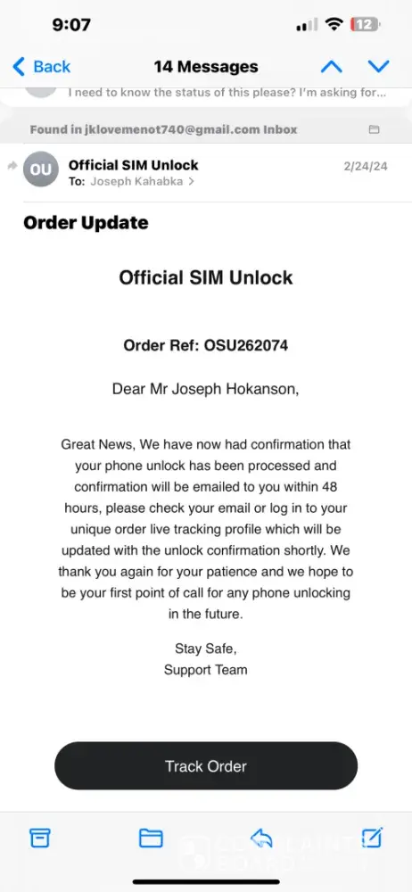 In conclusion, I urge anyone thinking of using Official SIM Unlock to proceed with caution. Based on my personal experience, I would not recommend this service to anyone, and I have even considered giving them 0 stars if that were an option.