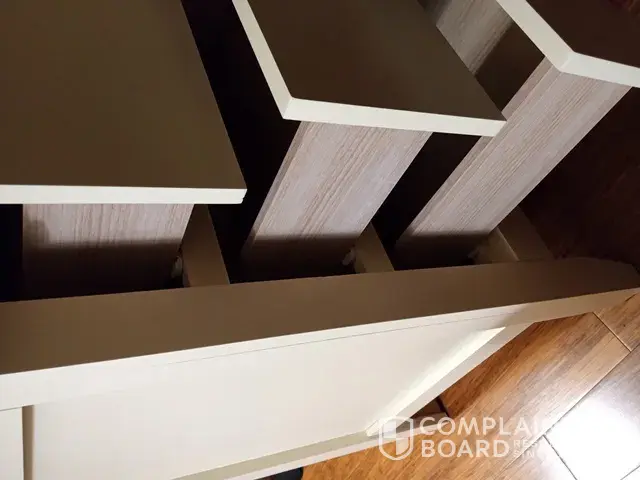 Firstly, the legs didn't fit flush to the frame, leaving a 1/4 inch gap on all of them. This meant that we couldn't secure the legs tightly, which caused the bed to "bow" out once we put the mattress on it. Secondly, the middle support bar couldn't be secured because the screws weren't long enough, and the legs were 2 inches shorter than the rest of the bed. This caused the bed to cave in the middle once the mattress was on it, which only added to the legs bowing out.