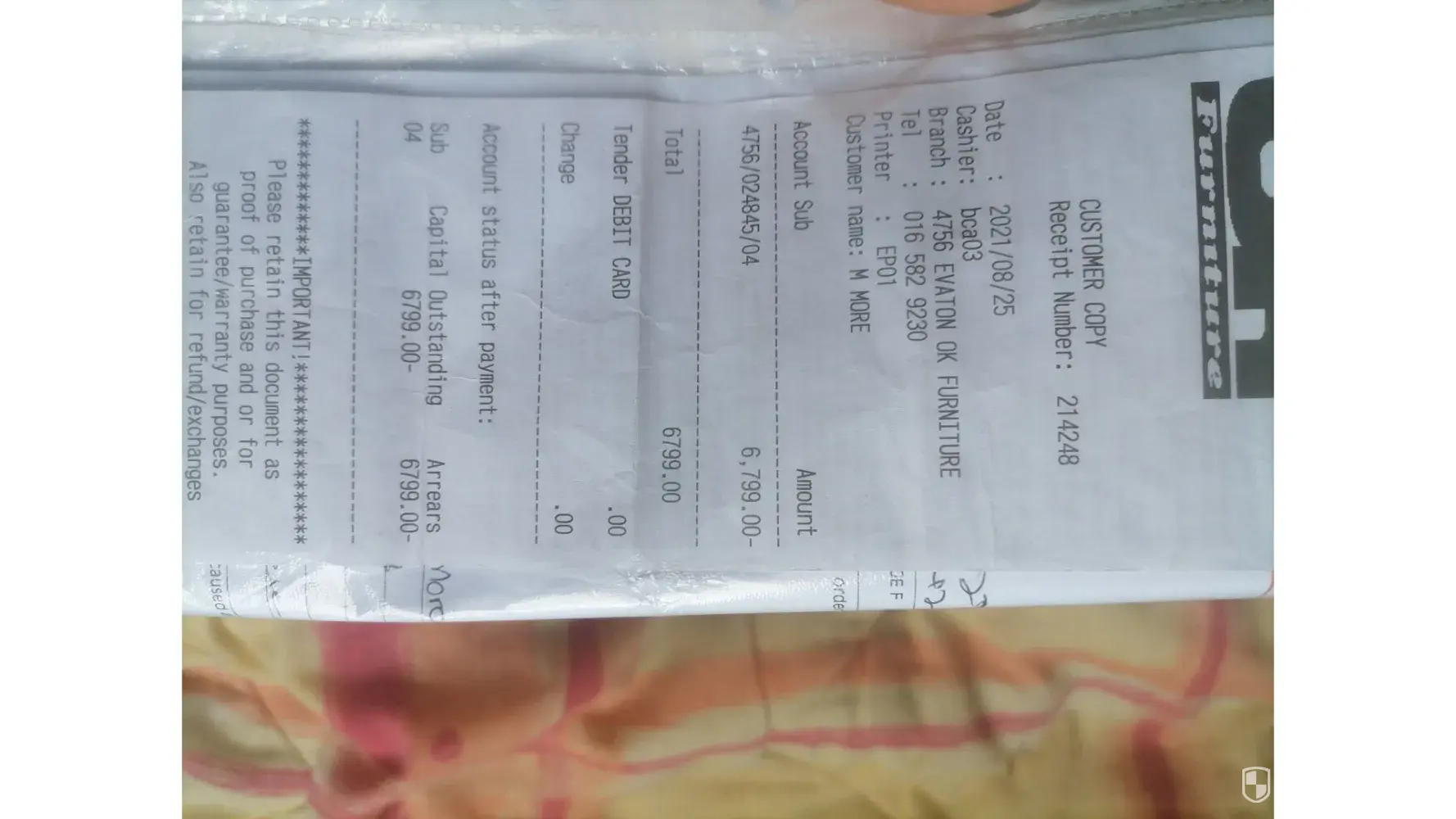 I bought a TV at OK Furniture Shop in Pietermartzburg and made a mistake of not checking if the TV was in good order, the TV was signed for in my absentia by the Saleslady using my signature.