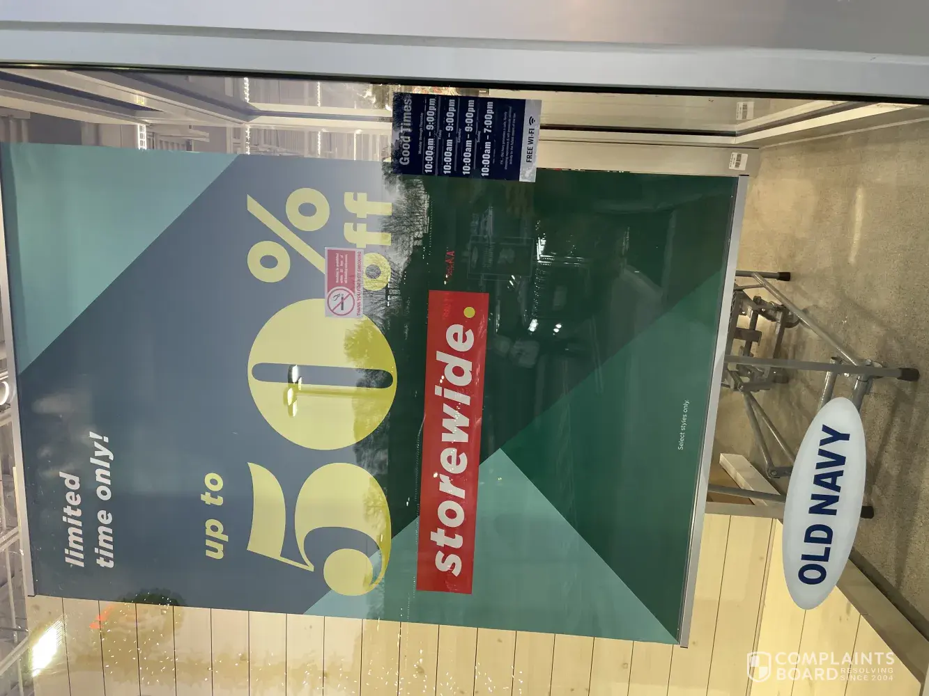 My mom was told by a sales associate that she would receive 50% off her purchase if she signed up for an Old Navy credit card. My mom thought she misheard her so she asked her to clarify and she repeated that she would receive 50% off her purchase. So, my mom's purchase was totaled to $177 and I, my niece, who was with us and her (my mom) stood there while the same associate took my mother ID, address and email information then my mom entered her social security number twice. Once the machine buffered and updated the total went from $177 to $170 and I literally laughed out loud.