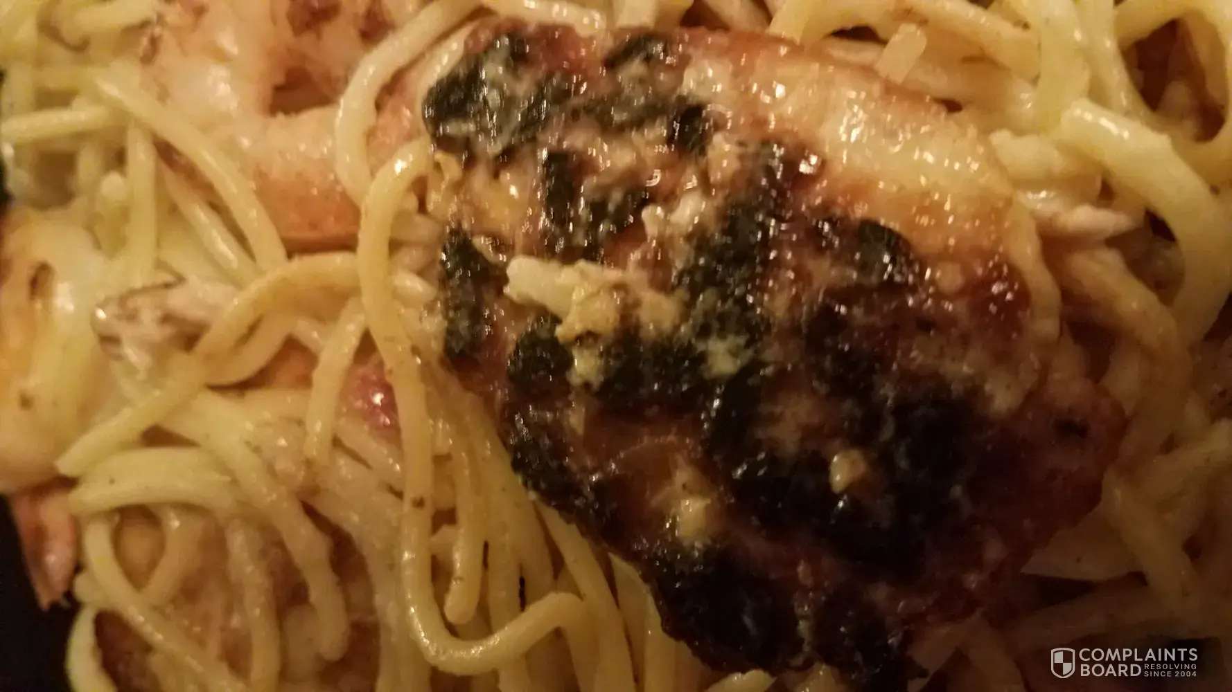 We ordered Togo pickup for the first time tonight. I ordered chicken and shrimp carbonera from the website and all the chicken was burned on bottom of each piece.. The bell peppers were burned and a couple of the Shrimp were burned as well. This caused the pasta to have a burned taste to it.