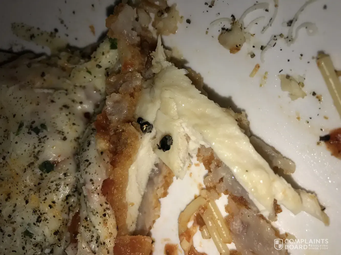 I went to olive garden last night which I dreaded in the first place. I haven't been in years because I have gotten sick from their food. My girlfriend wanted to get salad so I figured I would give it a try because it has been almost 3 years. I ordered the salad along with the chicken parm. The food came and about halfway in a cut into the chicken and realized I cut a beetle in half that was embedded inside of the chicken. I immediately called management and showed them what I had found in my food. I was very disgusted and disappointed. Please see the attached photos and hopefully the video will upload.