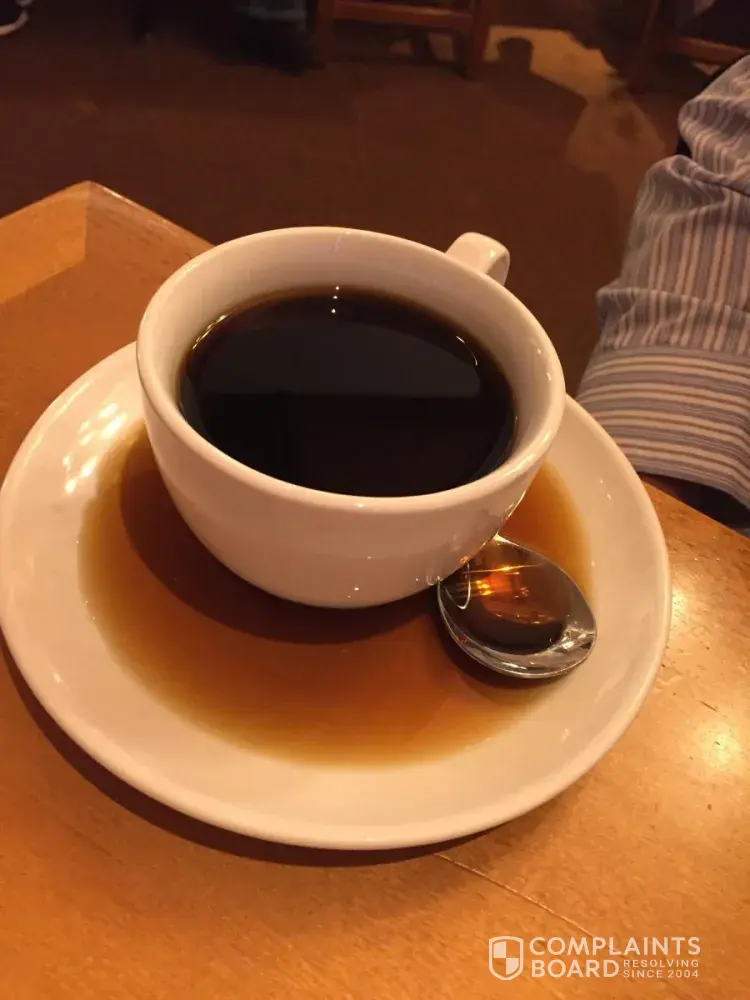 We visited the Olive Garden on Peach Street in Erie, Pa on Friday Dec. 23 2016. We called at 3:30 asking what the wait time was and were told "no wait time, but that could change at any moment". We arrived at 3:40 and waited less than 5 minutes, which was great, because we had to be at a church service at 5:00 pm. After waiting over 15 min. and never seeing a waitress to take our drink orders etc, I stopped a passing girl asking if she could send a waitress to our table, still no waitress but a hostess took our drink order and said that she would send our waitress over. We explained to the waitress that we had waited almost a half hour and had to be at a church service at 5:00pm, we received our food at approx. 4:30. I ordered a cup of coffee and attached is a picture the cup of coffee that I received, which I thought was totally unacceptable. My daughter works at Starbucks and said that she would have never served a this cup of coffee to a customer. I pointed it out to the waitress and she said that she would replace it, but after waiting 10 minutes, when she did walk by I just told her to take it off of my bill as I wasn't in the mood for coffee anymore. This is not a complaint about the food but the service was lousy and the coffee was not something that I should have received. Overall, this was a very disappointing dining experience at your restaurant.