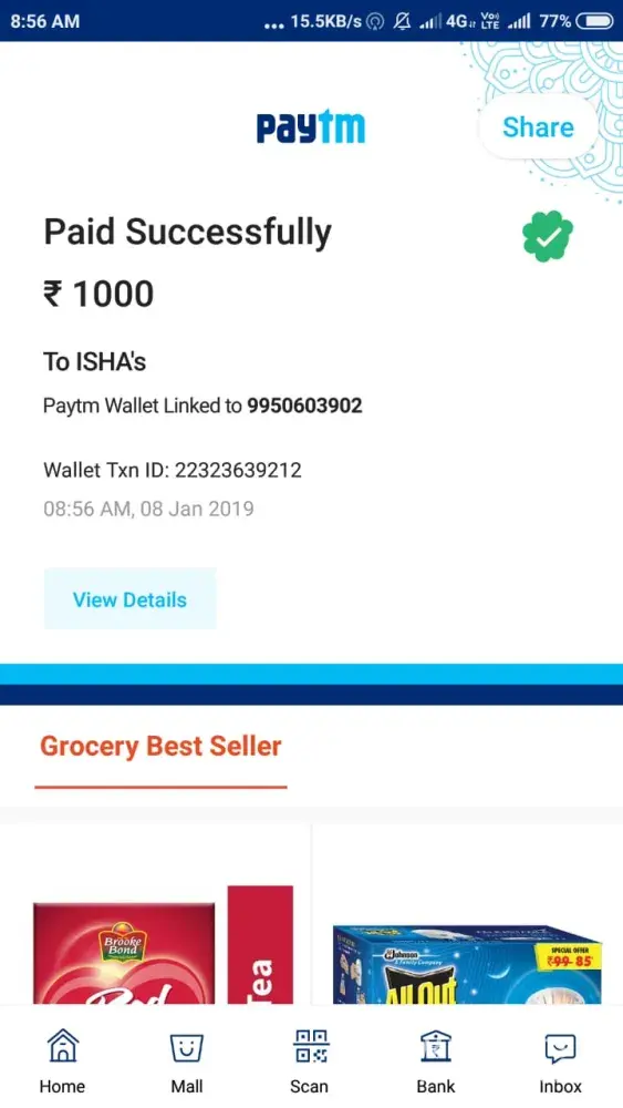 I done a deal on olx regarding mi note 5 pro smartphone at price rs. 5700 on dated 06.01.2019... And also paid the amount via paytm rs. 5500 after the seller promised me to that he delivered the product on the same day dated 08.01.2019.. But later on I found that it was scam which done to me by olx with collusion of unidentified seller. I have all the conversation screenshot and the payment screen shot to the seller.. But instead of all still not able to get my money back.