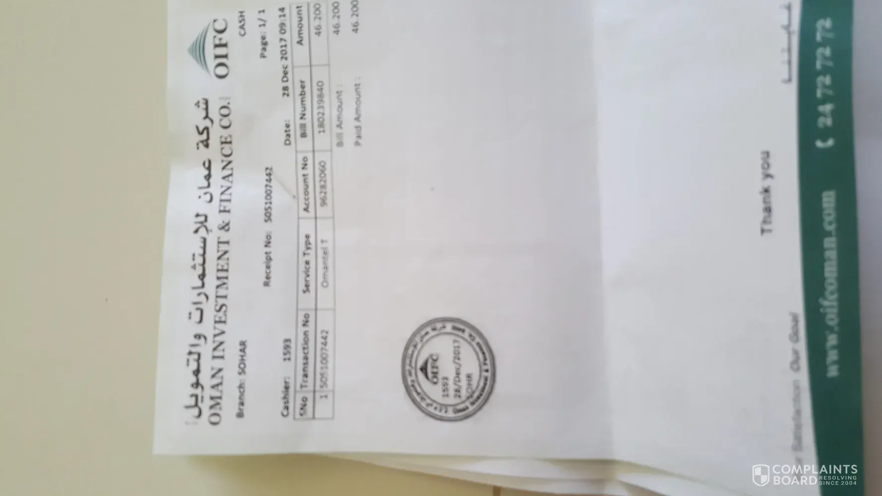 I have disconnected my landline no against oifc receipt no [protected] date 28th Dec 2017.branch sohar for account no96282060.