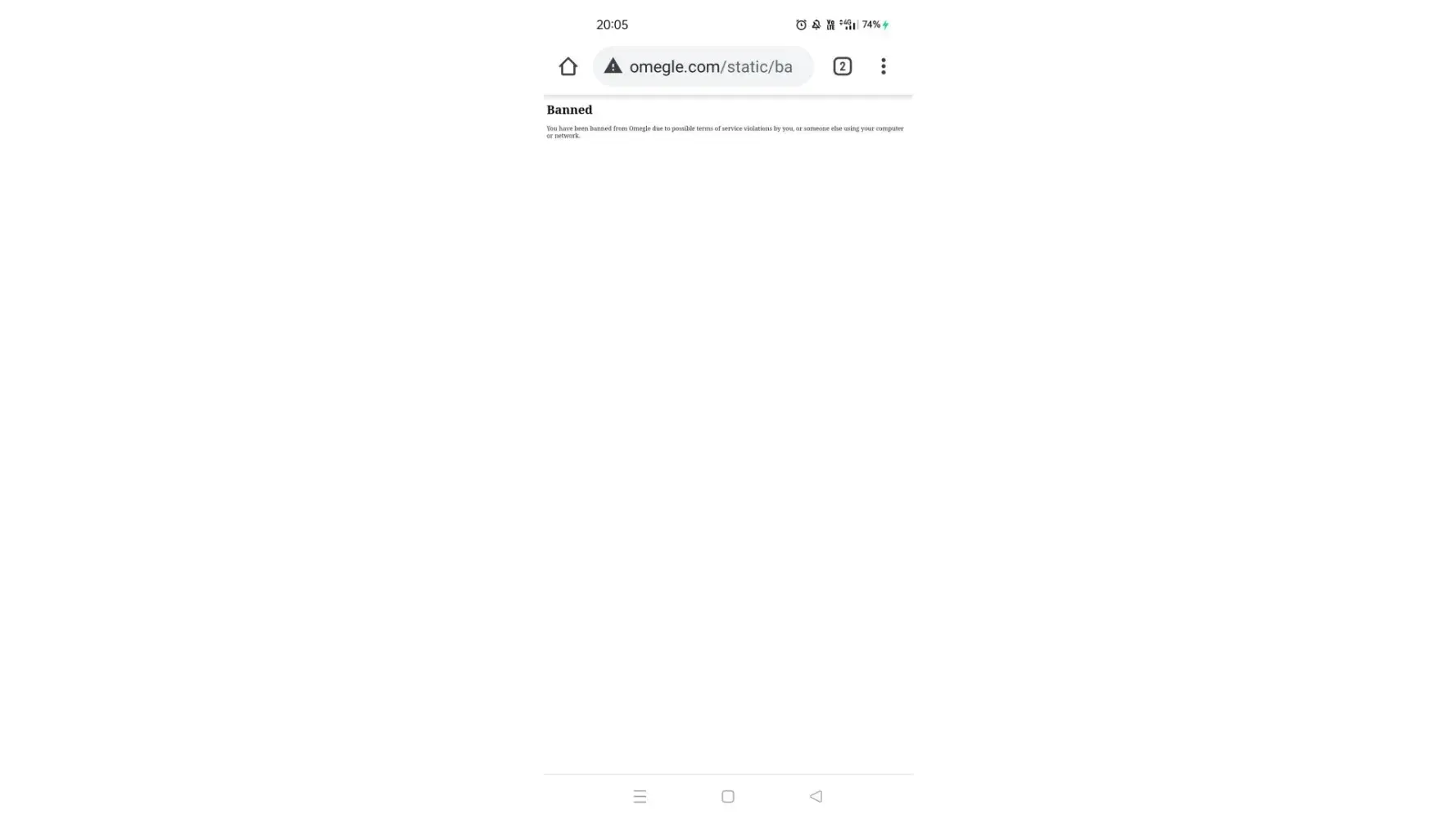 It was my second day on omegle between I was talking to people, my camera was disconnected for about 1m and when it was reconnected it told me that I was banned, I had not broken any of the regulations to be banned from omegle. I would like to be unbanned from Omegle because I didn't do anything wrong to get banned, only my camera was disconnected and when it came back on it told me that I was banned