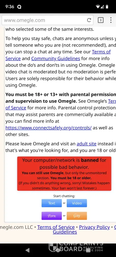 Omegle unreasonable ban