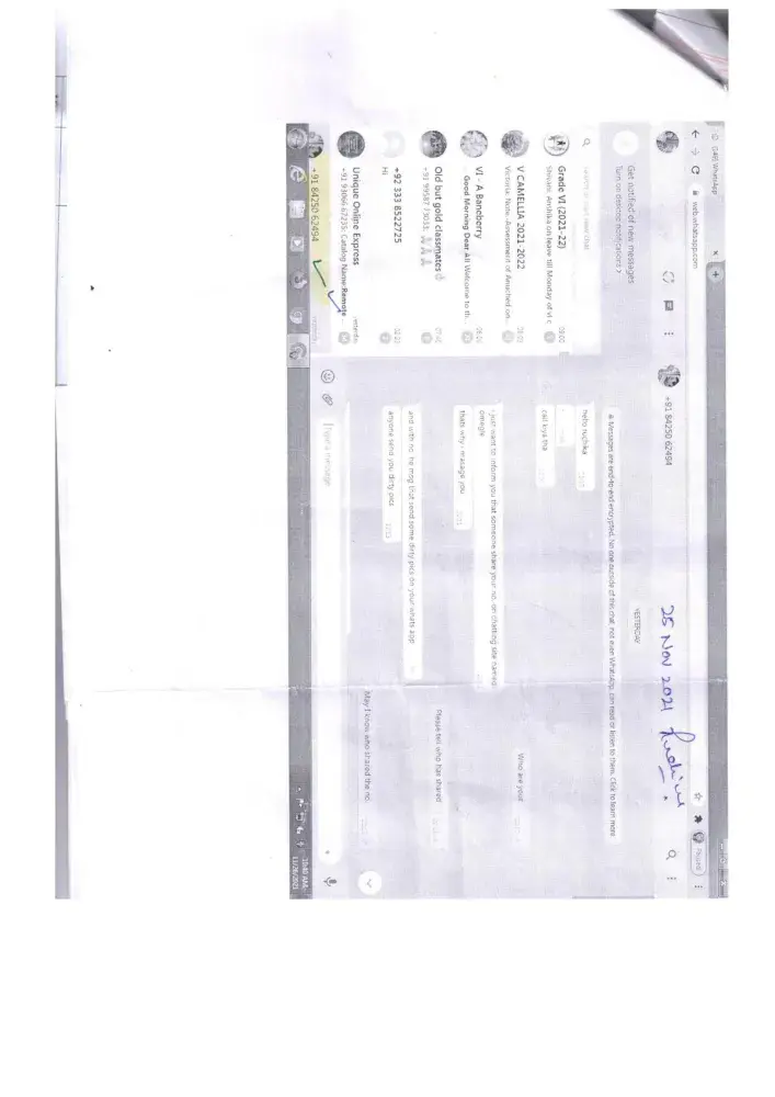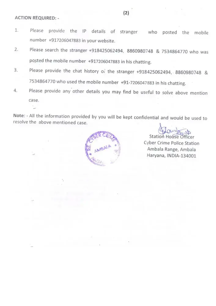 1. IP detail, chatting history of the strangers +918425062494, +918860980748, +917534864770 who was posted the mobile no +917206047883