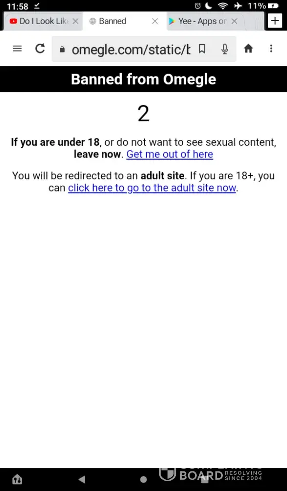 So I was Omegle for no longer than 5 minutes when I was banned. I did not show nudes or any of the sort. I am 15 and it's saying I can only go on 18+ chats! To be honest, this is a flaw because men show their dicks every day I am on there, and it is absurd. I heard that sending my problem somewhere could help with this. Omegle, get your things right. (Also put up a photo to show how young I am)