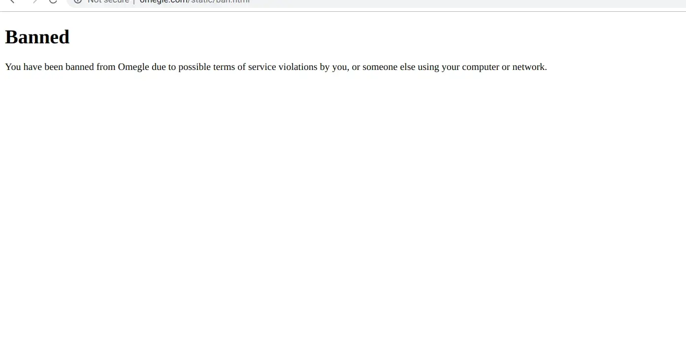 I was banned after leaving a chat with a completely naked guy in it. I left immediately, but as soon as I left, I was banned. Was he banned? Were we both banned? I don't know, but all I know is that I didn't break any rules and now my laptop is banned from omegle.